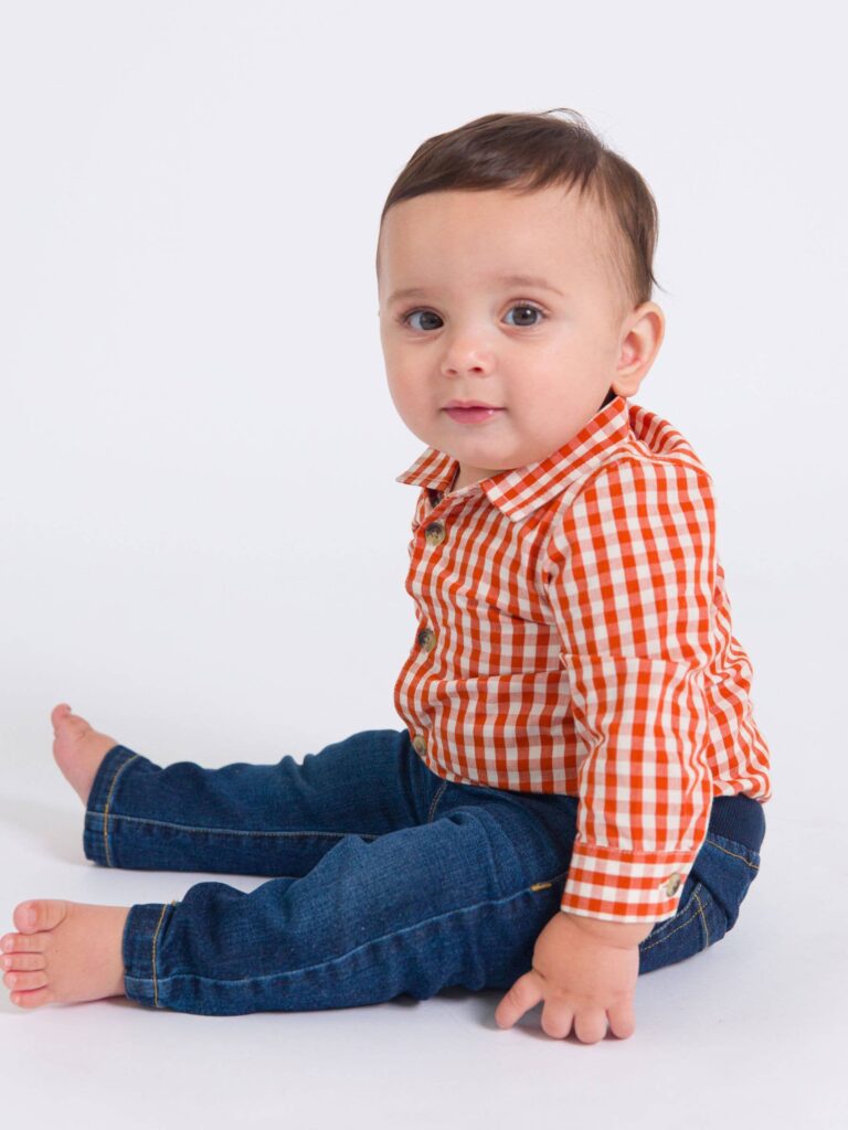 RuffleButts + RuggedButts – Baby Boys Classic Rust Gingham Long Sleeve Button Down Bodysuit