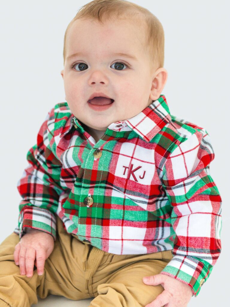 RuffleButts + RuggedButts – Baby Boys Dashing Dreams Plaid Long Sleeve Button Down Bodysuit