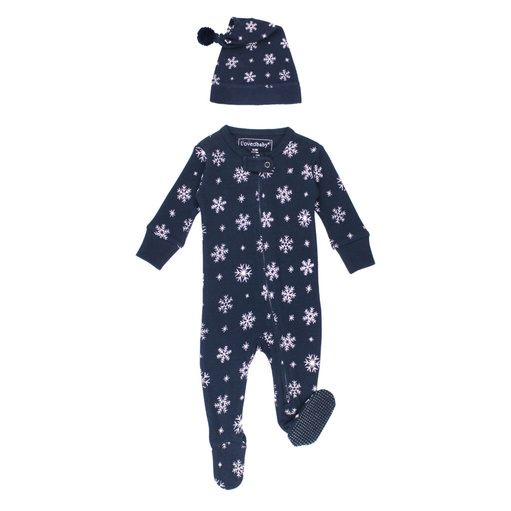 L’ovedbaby – Holiday Thermal 2-Way Zipper Footie & Cap Set, Snowy Night