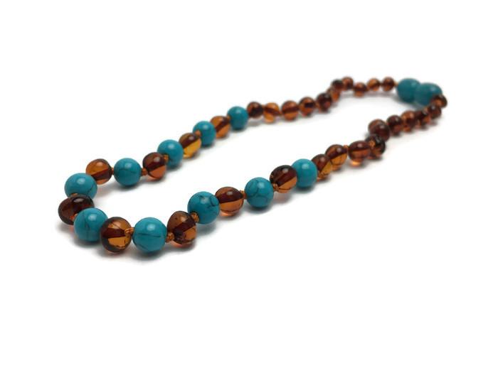 Necklaces are not for baby to chew on, the Amber releases microscopic amounts of oil, as it warms with the body's natural temperature, that is absorbed into the skin and bloodstream. Baltic Amber contains succinic acid (anti-fever, anti-inflammatory), the compound that gives Baltic Amber teething necklaces the therapeutic quality.